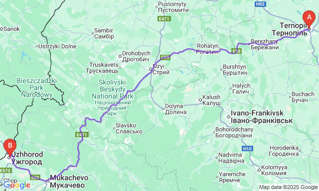 Скільки триває поїздка Тернопіль — Ужгород?