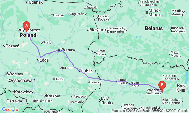Торунь — Житомир: автобусні квитки