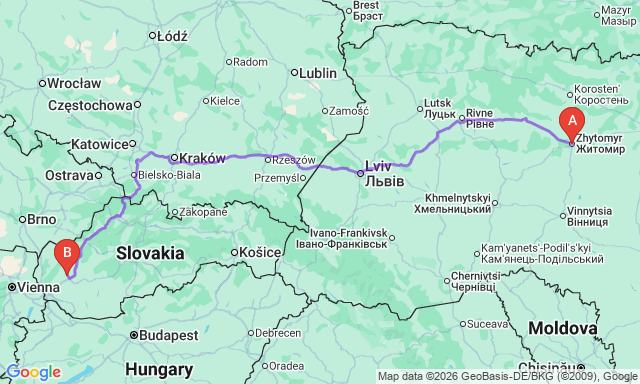 Найкраща ціна — у лютому. Квитки Трнава — Житомир від 3045 грн.