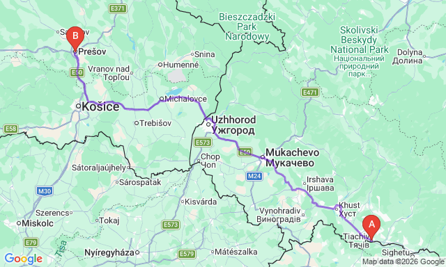 Автобуси з Тячів до Прешов — 2 рейсів на день. 2 перевізників, квитки від 1 510 грн.