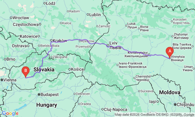 Скільки триває поїздка Вінниця — Нітра?