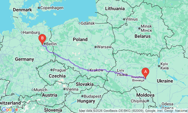 Скільки триває поїздка Вінниця — Потсдам?