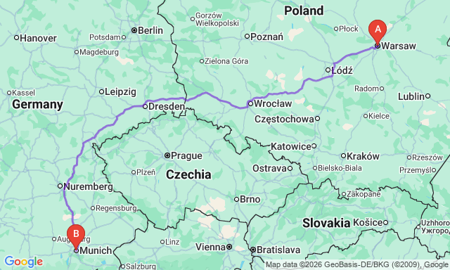 Скільки триває поїздка Варшава — Мюнхен?
