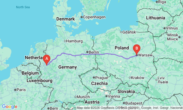 Скільки триває поїздка Вупперталь — Варшава?