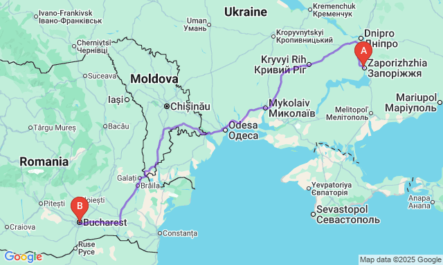 Скільки триває поїздка Запоріжжя — Бухарест?