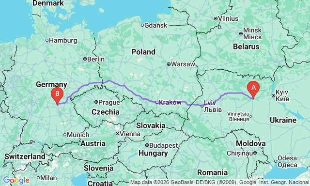 Скільки триває поїздка Житомир — Бамберг?