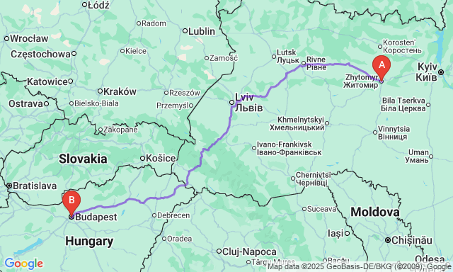 Понад 11 автобусів щодня з Житомир до Будапешт — рейс кожні 80 хвилин. 9 перевізників, квитки від 2 287 грн.