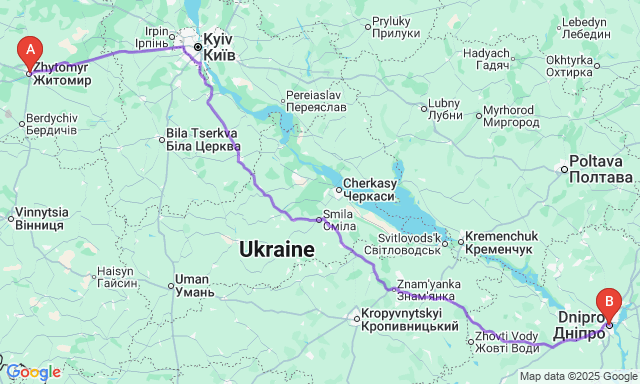 Скільки триває поїздка Житомир — Дніпро?