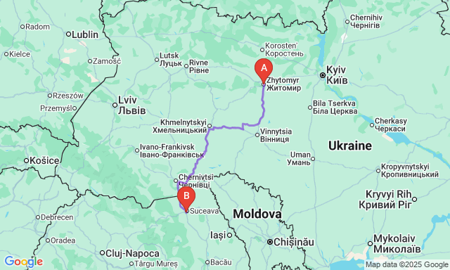Скільки триває поїздка Житомир — Сучава?